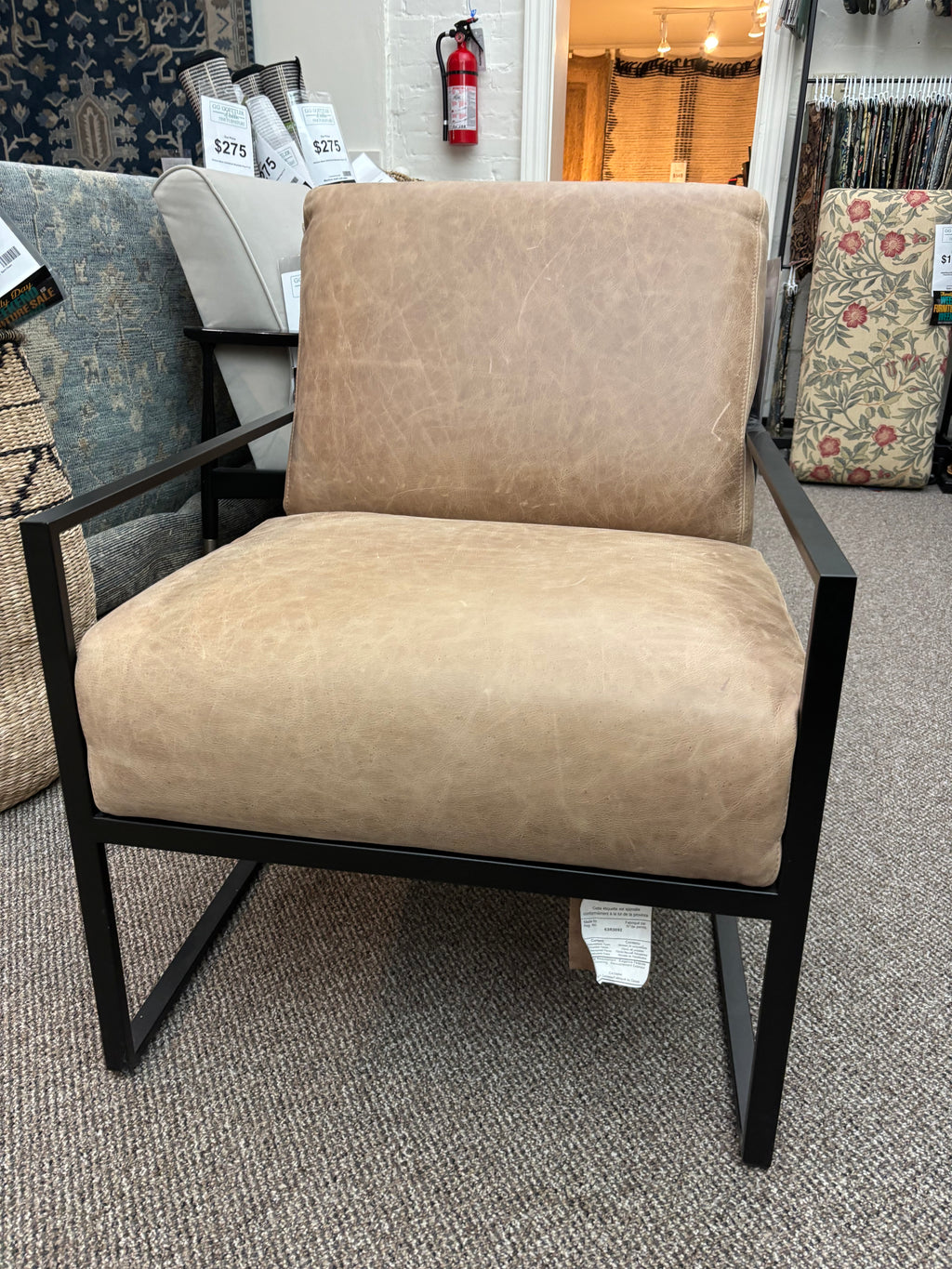 Final Sale. As Is. The Decor-Rest 3071 accent chair blends mid-century design with Hollywood glamour and is proudly handcrafted in... Final Sale. As Is. The Decor-Rest 3071 accent chair blends mid-century design with Hollywood glamour and is proudly handcrafted in Canada. Its unique tight-back design within a sturdy metal frame, offering both style and quality construction. Dimensions: 25" L x 34" D x 32" H View more
