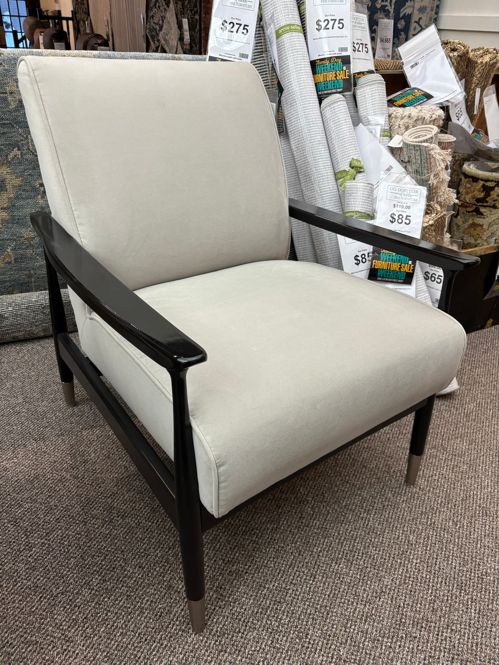 Final Sale. As Is. A stylish and versatile stationary fabric chair that makes a great addition to any living room,... Final Sale. As Is. A stylish and versatile stationary fabric chair that makes a great addition to any living room, study, or bedroom. This chair from the Canadian manufacturer Decor-Rest features a classic design that can suit a variety of decor styles.  Dimensions: 31”D x 37”H x 28.5W” View more