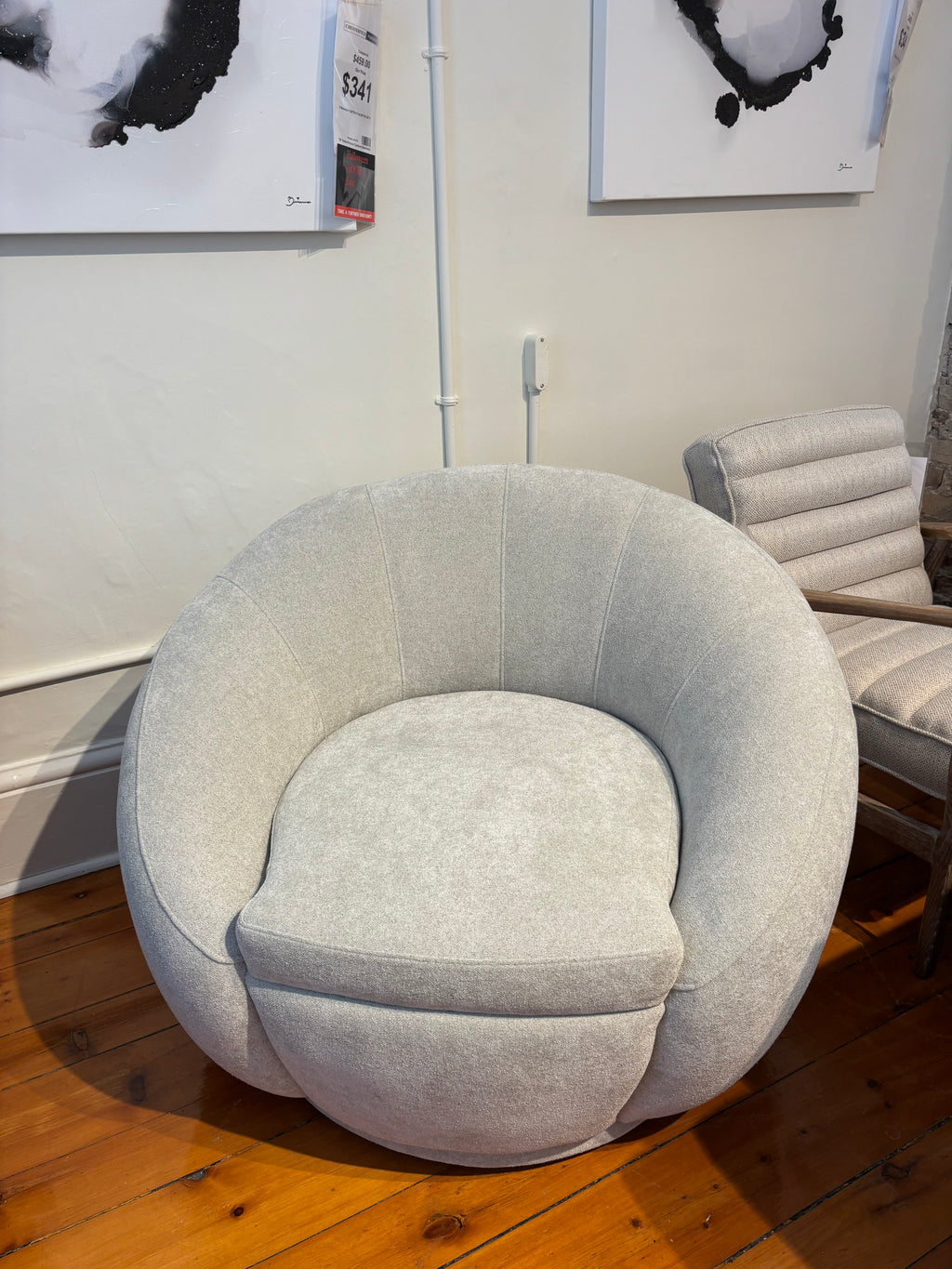 Final Sale. As Is. Baseball style swivel chair made in Canada 30” H x 37” D x 38” W