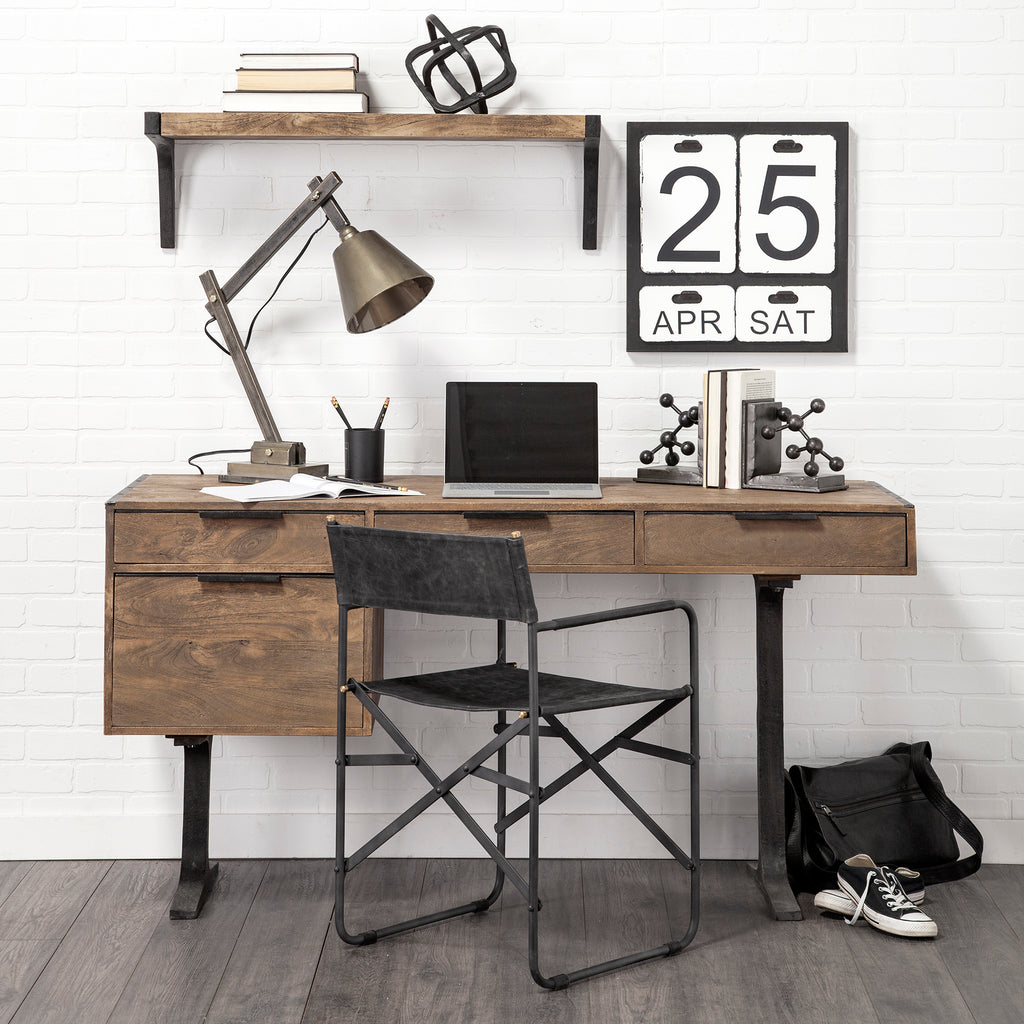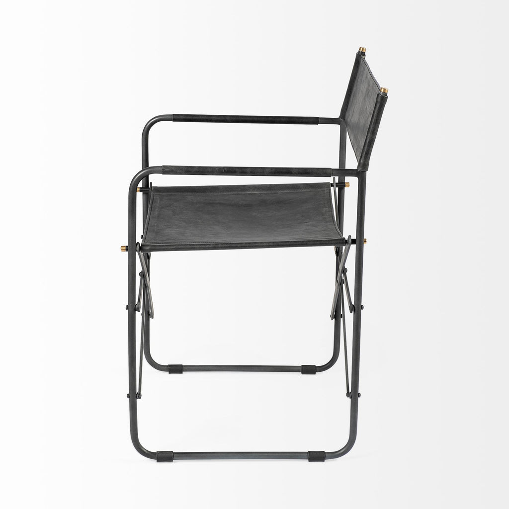 Final Sale. As Is. With its matte black iron frame and genuine buffalo suede leather, this folding dining chair strikes... Final Sale. As Is. With its matte black iron frame and genuine buffalo suede leather, this folding dining chair strikes the perfect balance between industrial edge and modern versatility. Inspired by urban loft and farmhouse aesthetics, its collapsible form and sculptural lines bring effortless sophistication to dining, entertaining, or casual seating spaces. Dimensions:  19.3”L x 20”W x 31”H View more
