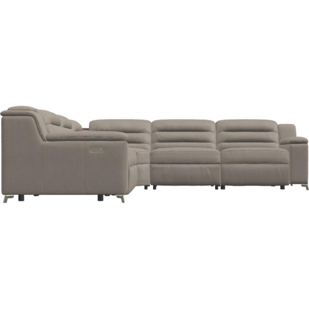 Power recline with a button switch featuring integrated USB charging, finished in an attractive brushed metal