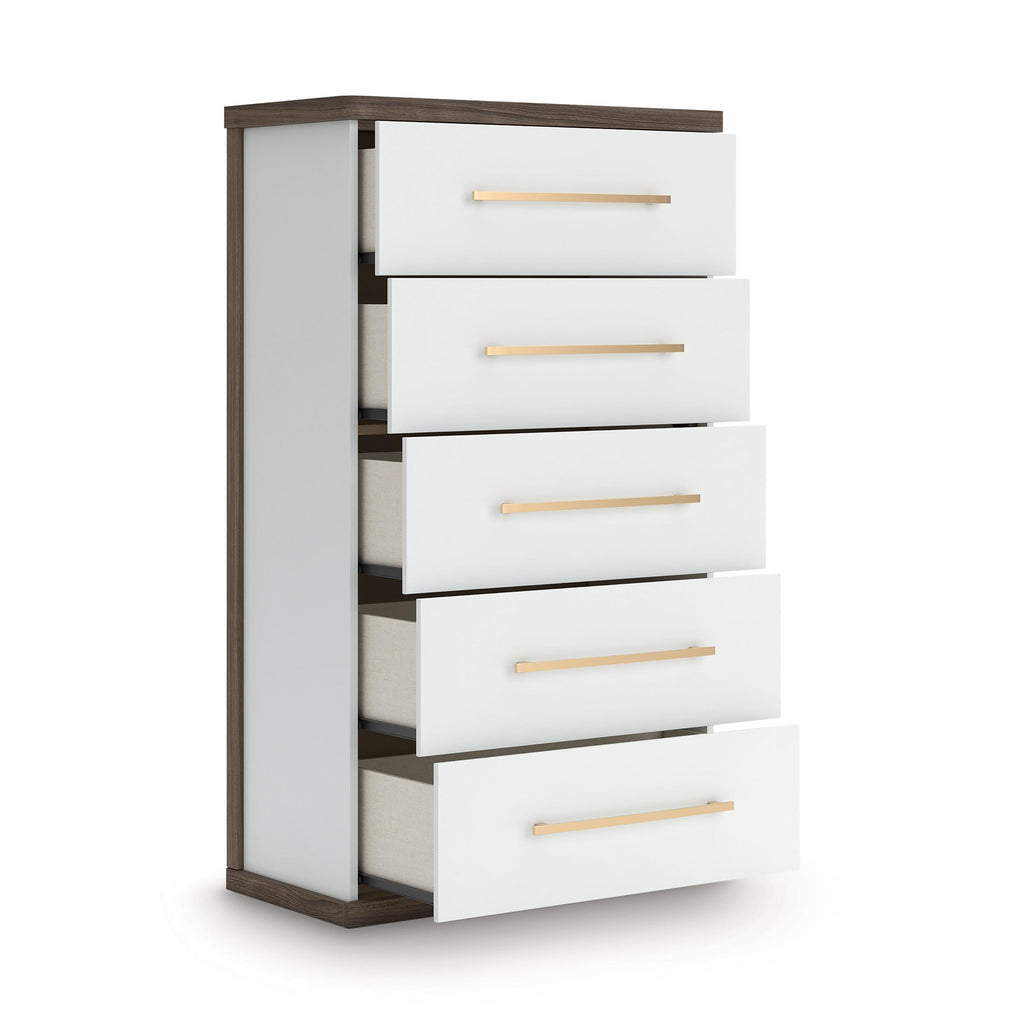 • Two-tone finish (dark brown finish over replicated walnut grain; matte white finish)