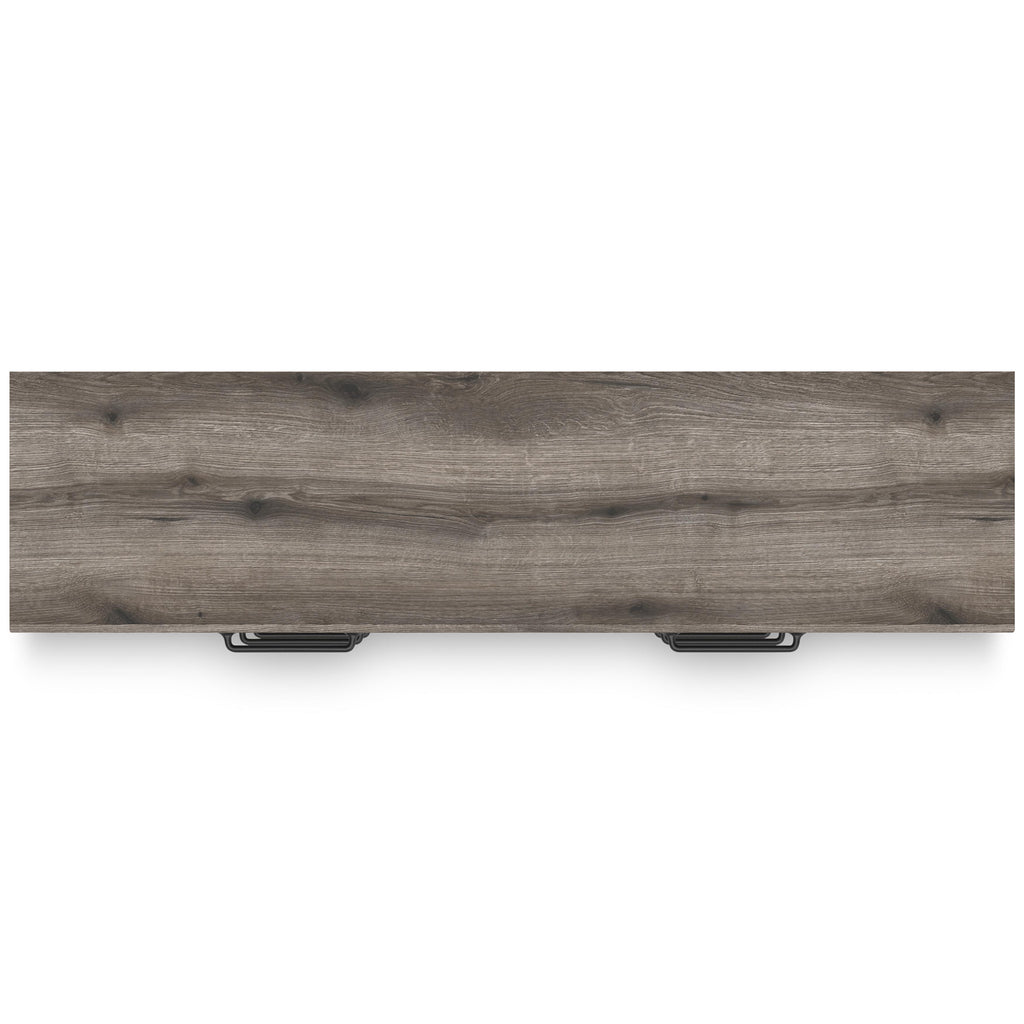 • Weathered gray finish over replicated oak grain