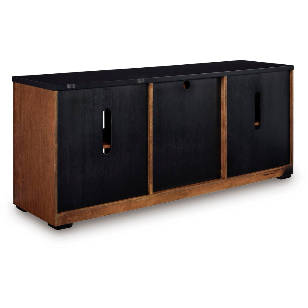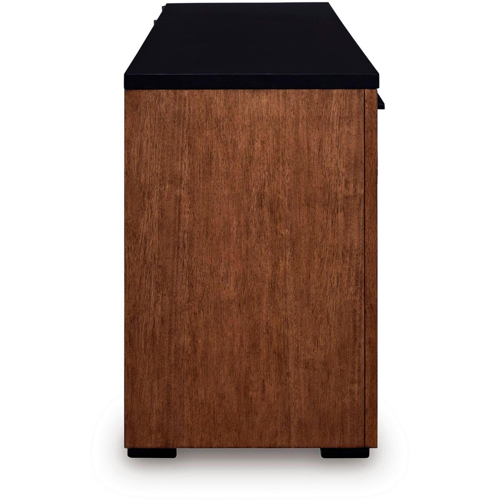 • Two-tone finish (medium warm brown wood tone and matte black)