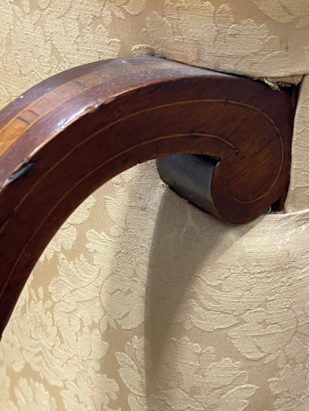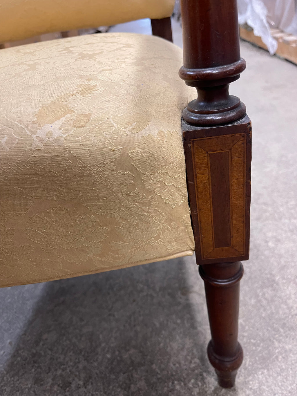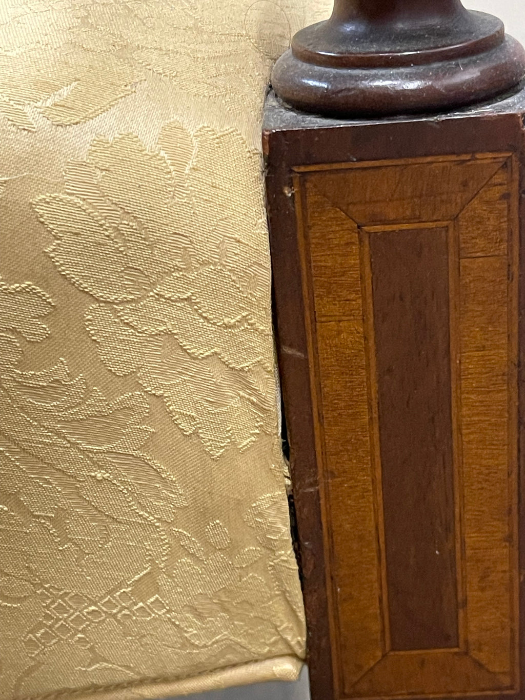 A simply lovely 20th century chair/ottoman, covered in a yellow brocade fabric is out. This chair has been well cared... A simply lovely 20th century chair/ottoman, covered in a yellow brocade fabric is out. This chair has been well cared for! 24"w x 24"d x 45"h. Well priced @ $200.00* plus hst. *(The proceeds of this chair/ottoman will be donated) View more